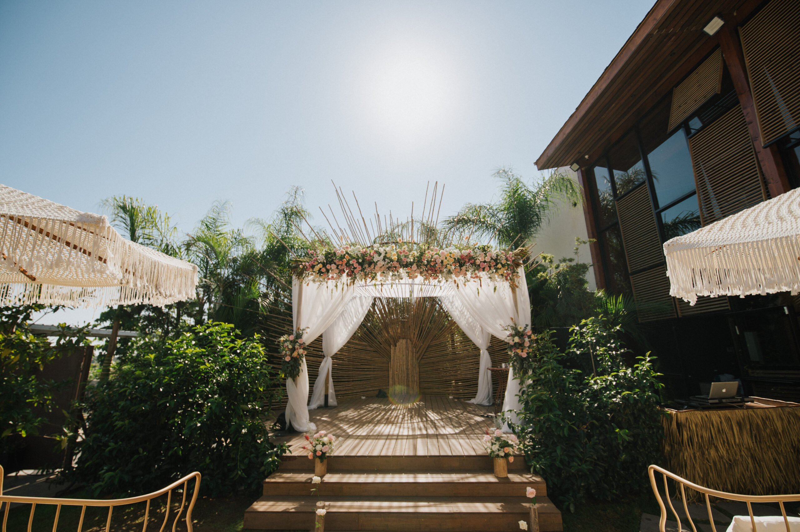חופה פתוחה ומוקפת בגן טרופי מטריף,